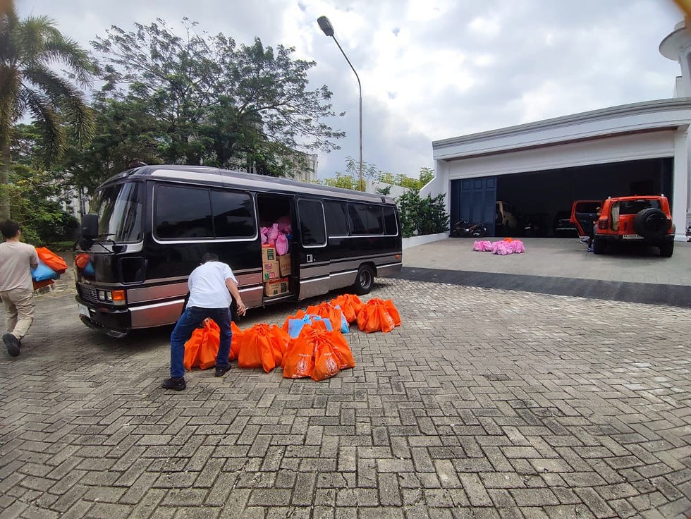 On the same day, this seva coincided with a humanitarian initiative by Chef Bobon Santoso from Jakarta through Kuali Merah Putih, who carried out a cooking seva preparing 10,000 meal portions. After completing the cooking activity, Chef Bobon joined SSSGC Indonesia at the evacuation site to personally share love and meals with children, mothers and fathers. His presence further strengthened the spirit of unity, compassion and collaboration in serving humanity.